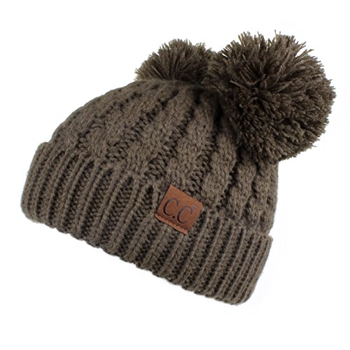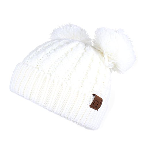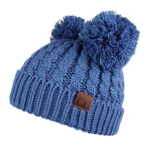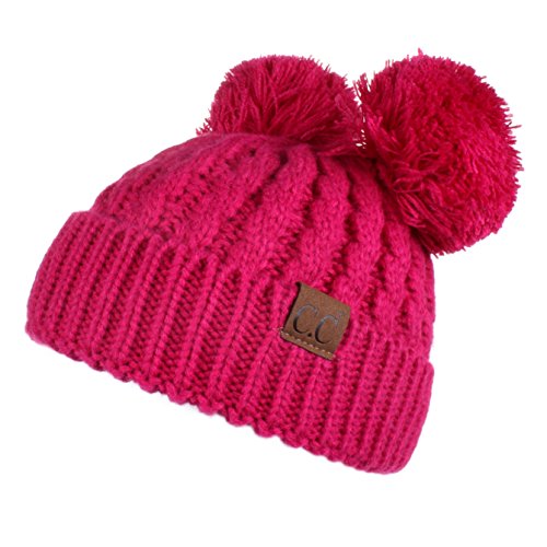 Hatsandscarf CC Exclusives Cable Knit Double Pom Winter Beanie(HAT-60)