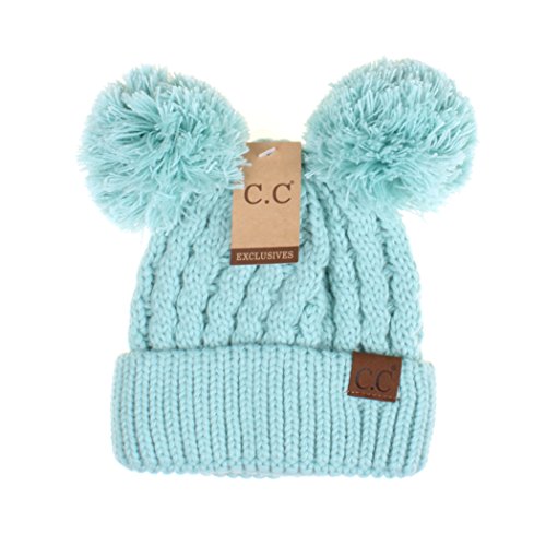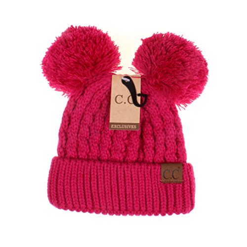 Product Description* Genuine C.C Brand * One Size Fits Most * 100% Acrylic * Made in China * Cable Knit Winter Warm Top Soft Double Cuff Pom Pom Beanie Hat0