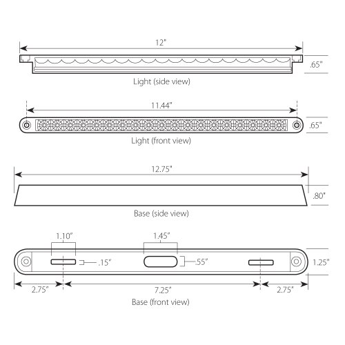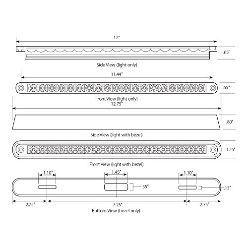 Grand General 76290 Amber 12" 19-LED Sealed Light Bar with Chrome Base and 3 Wires for Dual Function