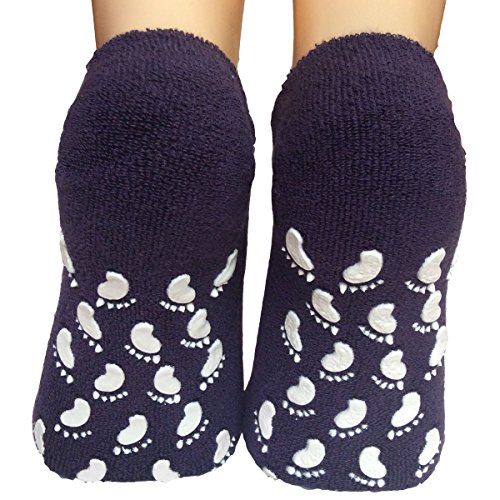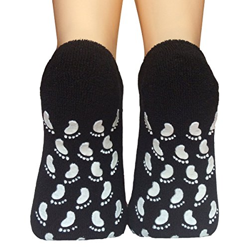 -. Feature : Lantee Non Slip Casual Floor Socks with Grips Cotton for Women / Non-skid design: Tiny cute foot shaped dots at bottom for better traction / Material - Machine washable combed cotton / Perfect to wear at home, traveling, at the gym, yoga or hospital / Medium (Fits to women's shoe size 5.5 - 9.5)