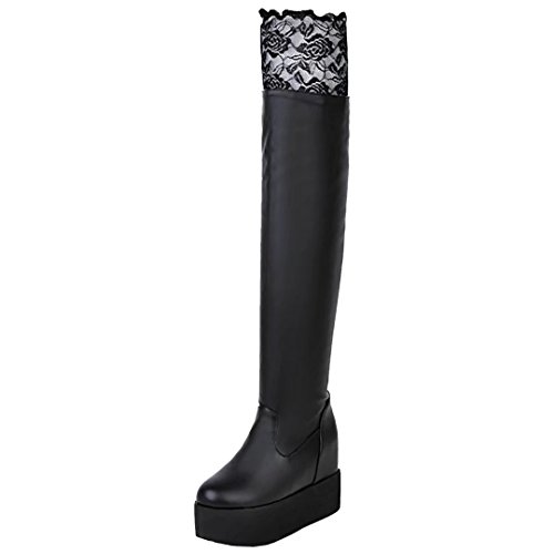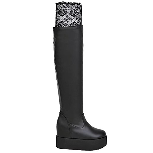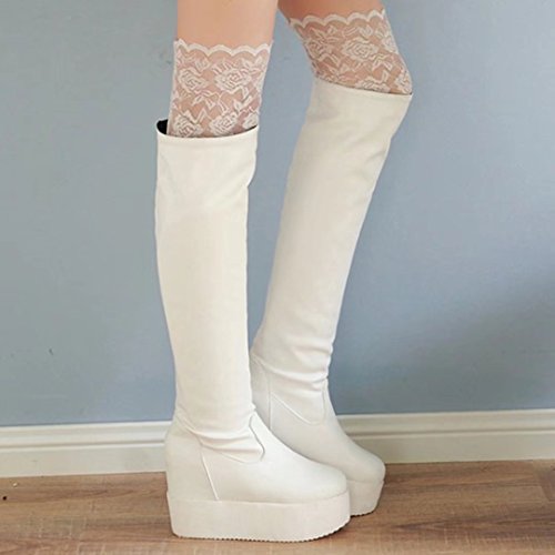 * Heel Height:12cm * Shaft: 65cm * Boots opening: 40cm * Platform Height: 4cm * Material: PU Lace * Inner Material: Suede * Sole Material:Rubber * Color: Black, White * Toe Type: Round Toe * Closure Type: Slip-on * Heel Type: Block Heel * The package will be delivered to you about 7-12 business days. * Please measure the sizes of your feet before you buy this item. If your foot is slightly wider or one of your toes is longer than usual, please choose the larger size. * Q1: What can I do if I have any problems? * A1: Please send email to tell us your problems first,we will reply you in 12 hours(except holiday) and try to find the best solutions,thanks for your trust! * Q2: What can I do if the products have problems? * A2: Please send us email with the problem products picture,which can help us to solve the problem in time! * AIYOUMEI commits to the shoes' design, craftsmanship have a unique study to the Excellent quality of products and timely courtesy of customer service experience, adhering to the customer is God's philosophy.Our product main conclud boots, military style, espadrilles, flat, lace-ups, loafers panties, High heels, plateau, casuals, dress shoes, oxfords and so on.If there are any problems, please feel free to contact us at any time, we are always here to help you. 0 |