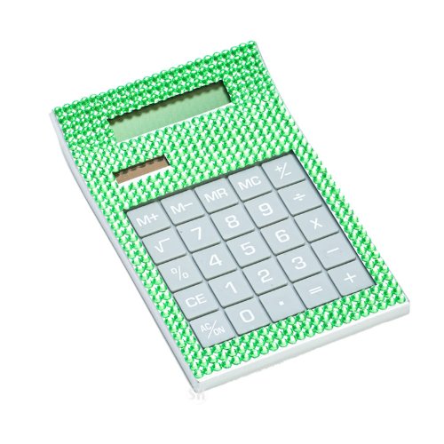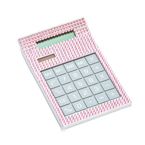 This solar powered desk calculator is covered in acrylic crystals. With all the basic functions of a standard calculator, you are certain to get a lot of use out of this fashionable desk accessory. This calculator has a nice size screen measuring 2" long and .5" wide. The overall calculator measures 5.75" x 3.5" x .25".Feature