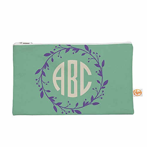KESS InHouse Kess Original "Classic Green Wreath Monogram" Lavender Digital Everything Bag, 8.4" x 4" (KIH309AEP03)
