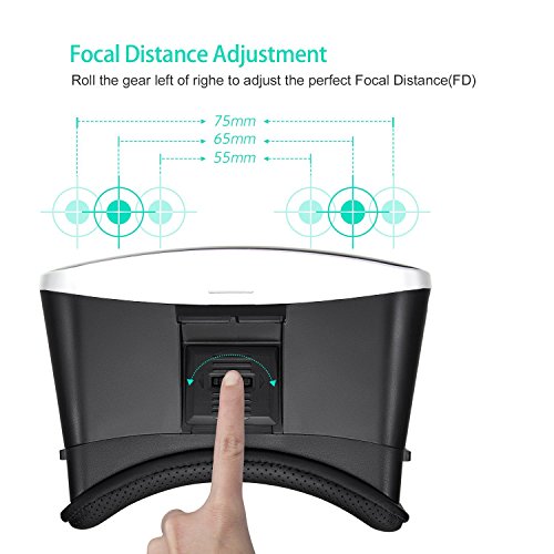 -. Feature : Amazing revolutionary tech, turn your Smartphone into a virtual reality viewer. You can experience the immersive, fun and exciting world of VR. Fly through the Grand Canyon, play 3D games, travel the city streets or become a character in an animated film. / Use high quality ABS and resin lens material without stimulation plastic sheet, environmental, high quality, lowering down the distortion to the minimum when magnifying the images and providing wider view; You will not feel visual fatigue and dizzy even you use it for a long time because of the resin lens. / Easy to put your smart phone into the 3D glasses - Easily pull the smart phone storage box out, then put your smart phone in it. Perfectly suitable your face when you wear the 3D VR glasses; You can get free from your glasses while enjoy the 3D movies or games with the virtual reality glasses, bringing you better experience. / Adjustable on pupil distance and object distance, satisfying different groups of people. Optical Axis Sliding Control function: You can slightly adjust the position of the spherical resin lens through moving the button on the top of the 3D VR Glasses so as to get a better experience of watching movies. You can get a viewing angle of between 70 to 80 degrees/ FOV / Suitable for almost all kinds of smart phones (Android / IOS, etc) that screen between 4.0~6.0 inches; Both sides holes of the 3D VR glasses is specially designed for the headset / data / charge cable, letting you charge your smart phone (You had better not charge your phone during enjoying movies).
