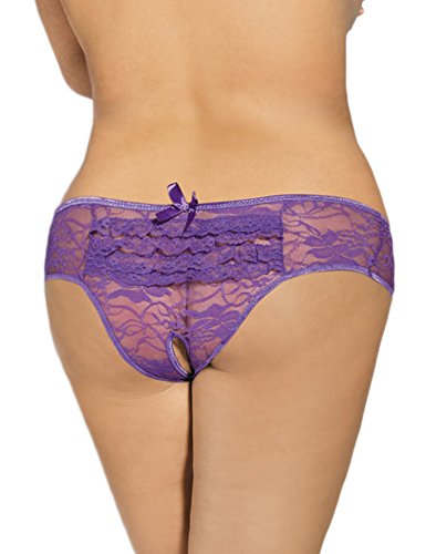 J-boxing Women Sexy Open Crotch Underwear Plus Size Lace Sleepwear Thong (2XL, Purple)