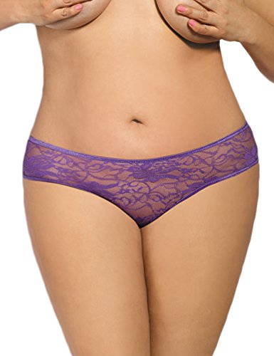 J-boxing Women Sexy Open Crotch Underwear Plus Size Lace Sleepwear Thong (4XL, Purple)