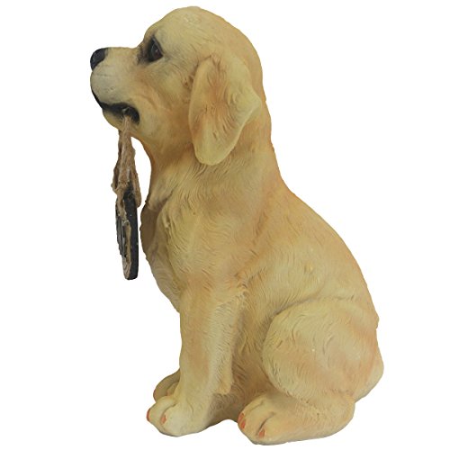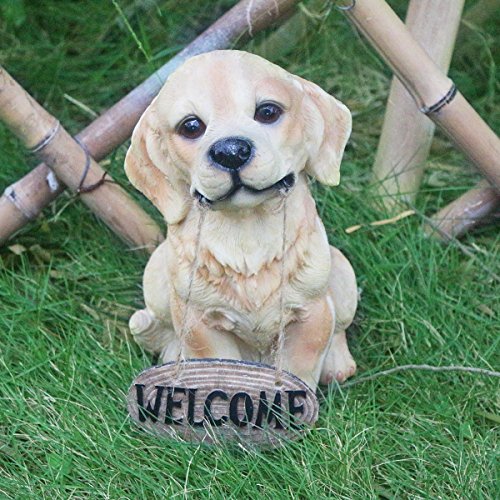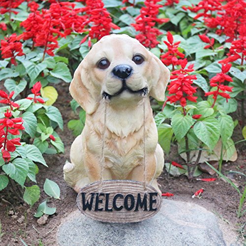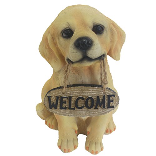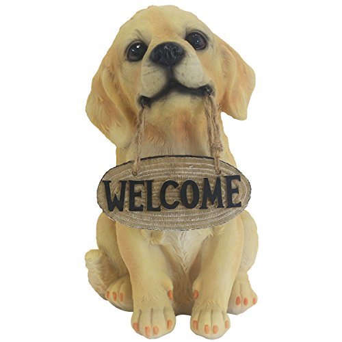 10.5 Inch Dog Statue, Hand-painted Golden Retriever Sculpture with welcome sign figure for the front door, yard & classroom. JHP