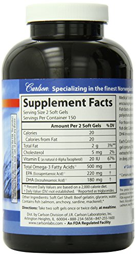 For individuals who do not eat an oily fish diet, Carlson offers substantial amounts of the omega-3's EPA and DHA in easy-to-swallow soft gels.