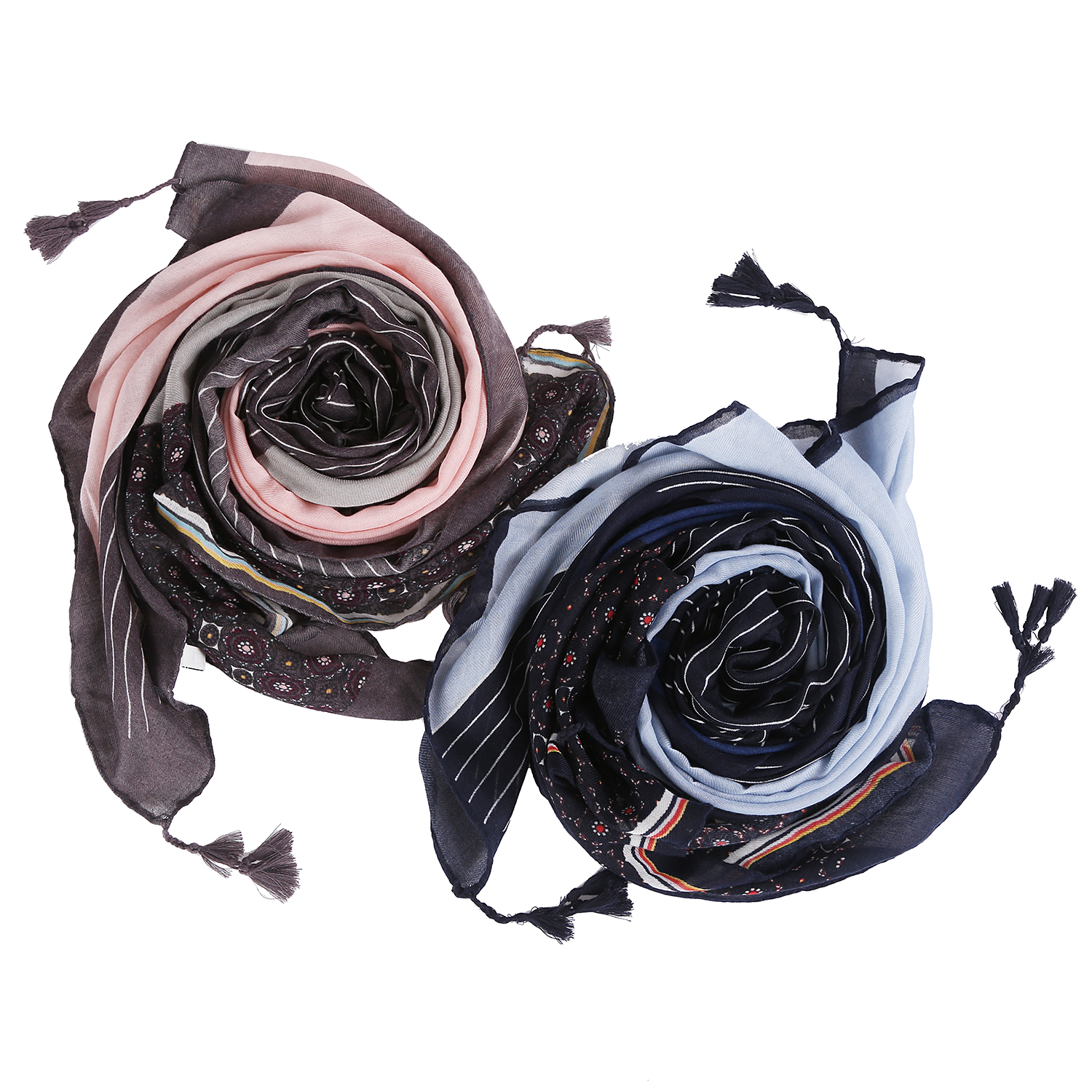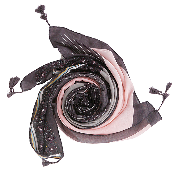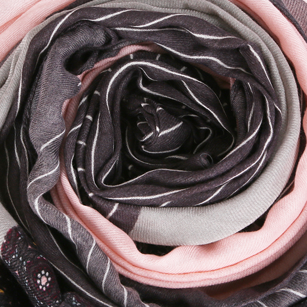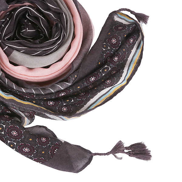 사선으로스트라이프와 꽃무늬패턴 핑크그레이의 색상배합과 양끝의 추의 포인트는 매우 멋스러운 제품 입니다