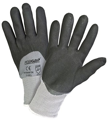 West Chester 715SNFTK/L Black Foam 3 4 Dip Nitrile Glove on Gray Nylon Shell, Large (Pack of 12)