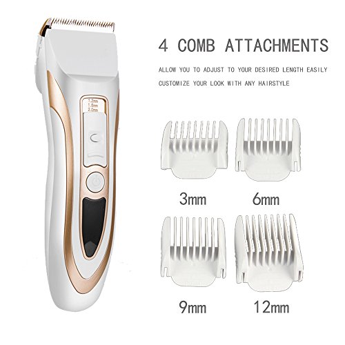 - We provide 4 guide combs with different sizes (3, 6, 9, 12mm) that offer you practical needs in different situations. You can easily trim your hair evenly or differently for stylish purpose.(Aviation restrictions oil not include)