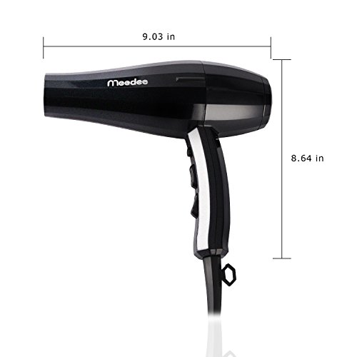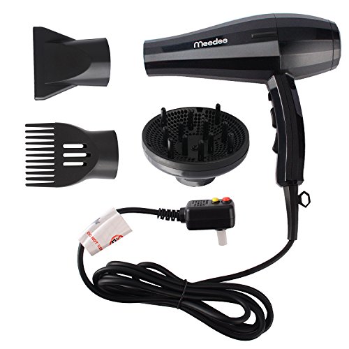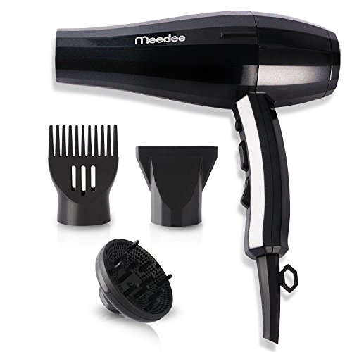 Meedee 2200 Watt Salon Professional Brushless Hair dryer with Ionic & 10 Feet long cord , 1 Diffuser and 2 Nozzle Fast drying Lightweight Blow dryer for...