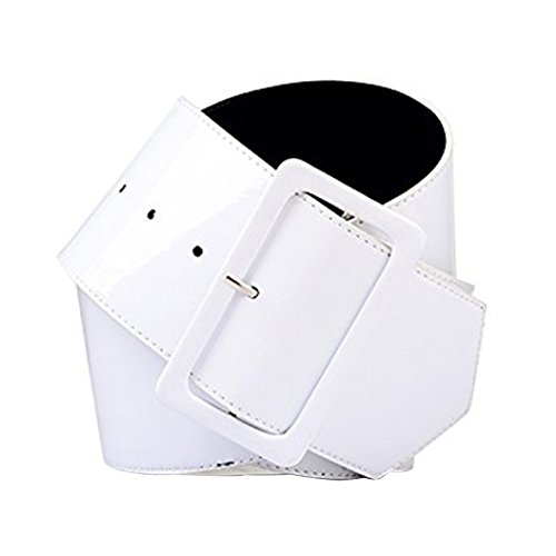 Binding : Apparel Product Description Size Guide: Small - Up to 31" inch Waist Medium - Up to 38" inch waist Large - Up to 47" inch Waist Ladies/Girls Retro PVC Wide Cinch Waist Belt Shiny Stylish Big Buckle 70's Style with 5 Adjustment holes and high quality Big Stylish Buckle. 0