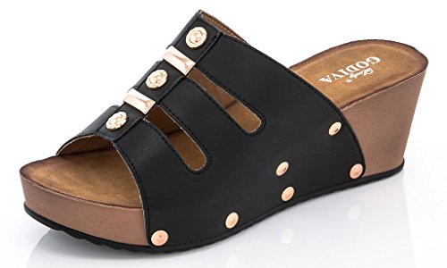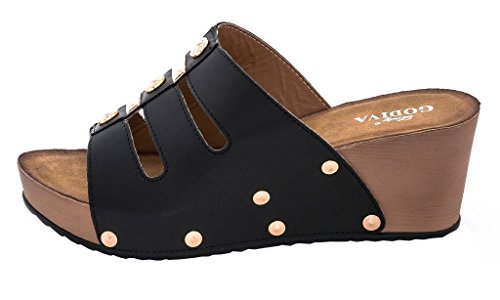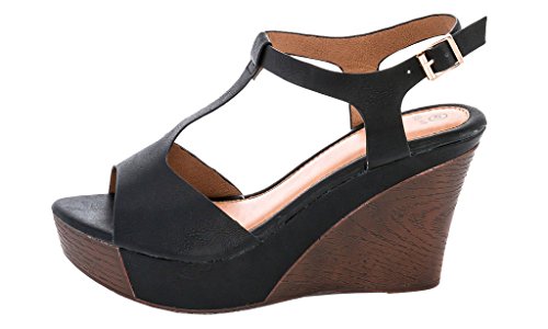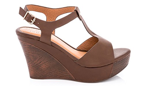 Lady Godiva Women's T-Strap Wedge Sandals