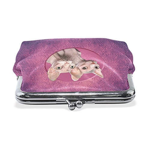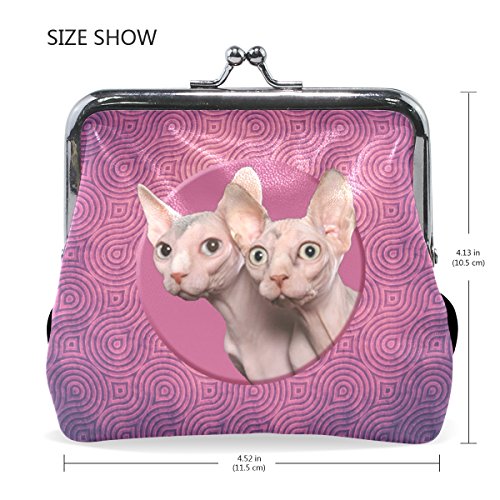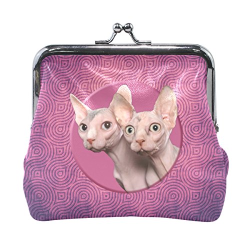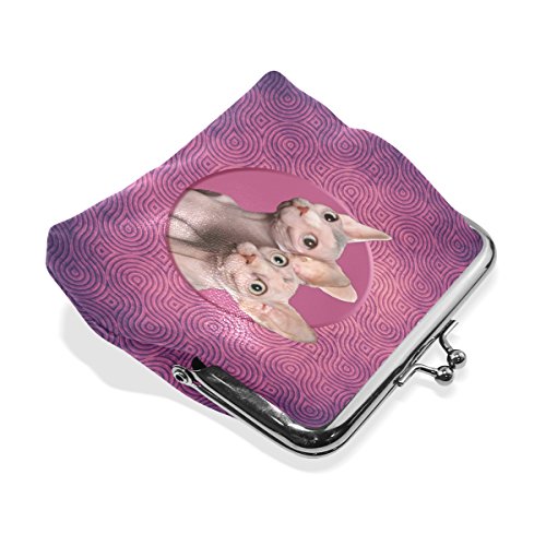 Ethel Ernest Cute Animal Funny Hairless Cat With Pink Stripes Coin Wallets Mini Purse for Women...