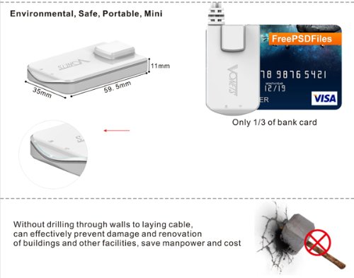 10.Equipped with 3 parallel DC jack:DC 2.5,DC 2.0,USB jack(Using for taking electricity),it is convenient for the users to share power with the other IP equipments.