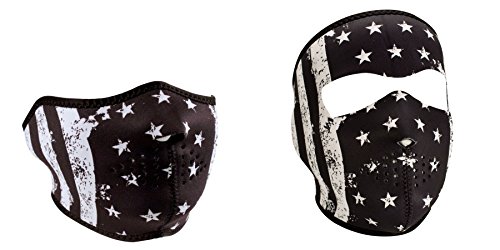 -. Feature : This Product is a 'Bundle' of 2 Neoprene Face Mask Items identified as a 'Black & White Vintage U.S. Flag Face Mask' and a 'Black & White Vintage American Flag' / The First Facemask Item is the ZanHeadgear 'Black & White Vintage U.S. Flag Face Mask' Half Face Neoprene Face Mask / The Second Facemask Item is the ZanHeadgear 'Black & White Vintage American Flag' Full Face Neoprene Face Masks / Face Masks / Ski Mask Items are made of Durable, Naturally Warm & Water Resistant Neoprene Face Mask Material / Face Mask Sizes are adjustable, by up to 2 inches, using the Hook & Loop closure, located at the back of the head