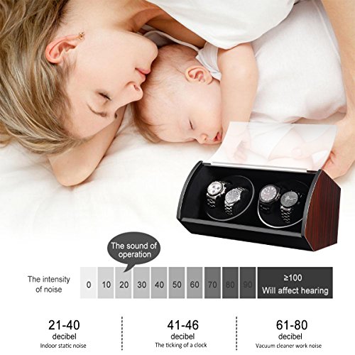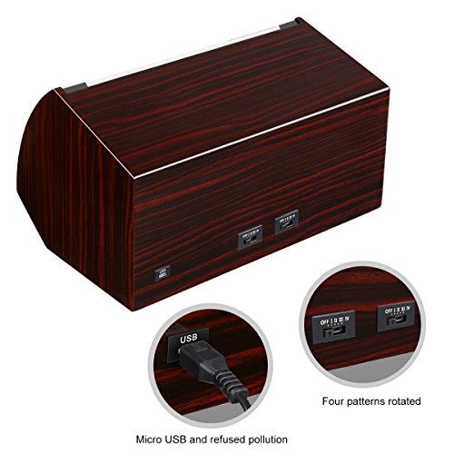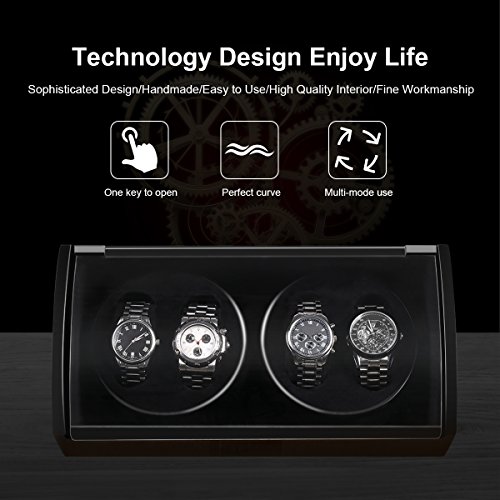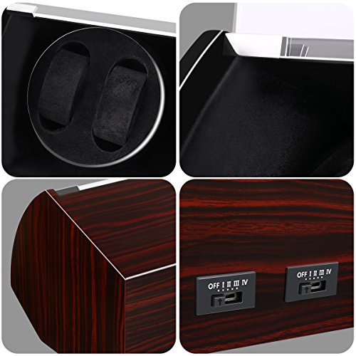 -. Feature : PREMIUM CRAFTSMANSHIP: constructed of sturdy MDF with high gloss piano lacquer finish, our watch winder is precisely designed and lasts for years; it simulates the natural motion of the human wrist so that your watches will always be wound and ready for you to wear / NO NOISE, NO MAGNETIZATION: Japanese Mabuchi motor, in combination with a gearbox, inside the watch winder makes it long lasting and run extremely quietly; with zero noise or magnetization to harm your watch, you can put it on anywhere especially bedroom and office / 4 SETTINGS: each turntable has 4 modes; the exact amount of TPD your particular timepiece needs will be specified by its manufacturer, check your timepiece user's guide and choose the best option to avoid not enough winding and over-stressed winding / FITS ALMOST ANY SIZE WATCH: the interior foam cushions are soft enough to accommodate almost any size of watch without any scratches; the crystal acrylic glass cover allows easy access to the display and protects your watches against dust / USB/MAINS POWERED: this watch winder is powered through a USB cable and comes with an AC/DC adapter so you can use it whether you are at home or on the go; compatible with computers, laptops and other devices with USB ports