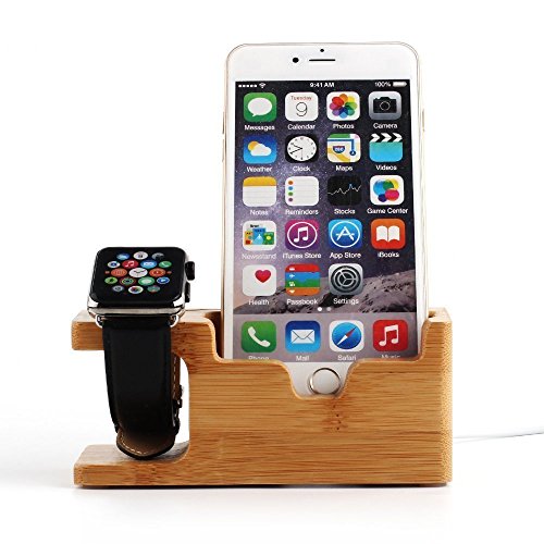 TuoP@Cell Phone Charger Dock with Watch Holder Desk Wooden Charging Stand 2 in 1 Bamboo Charging Stand Support Holder for Apple Watch for iPhone 7/7 plus/ 6s/6s Plus/6/6Plus/5s/5c/5