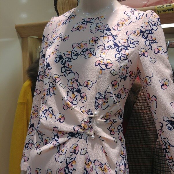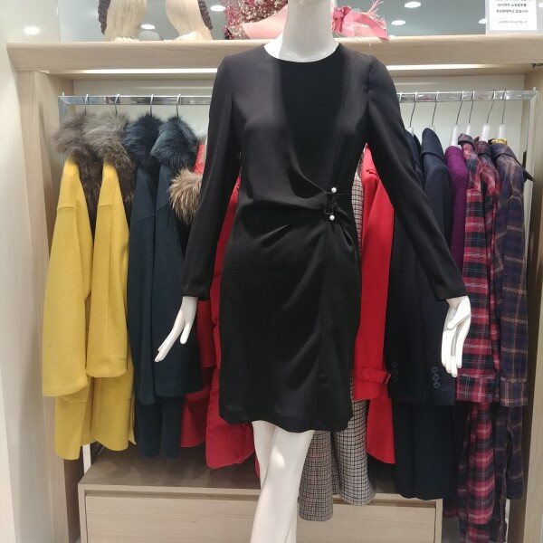 한층슬림한 바디라인을 연출해주고 벨트같은느낌의 진주가 포인트인 너무예쁜 원피스~착용만해도 여성스러운 분위기가 뿜뿜 느껴져요~~~~~!♡