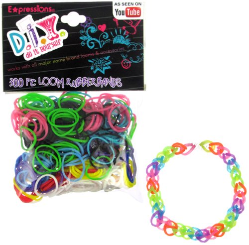 Studio : Almar Sales Company Publisher : Almar Sales Company Binding : Toy Product Description Make your crafts as unique as you! Add these super colorful rubber bands to your Rubber Band Bracelet Loom Kit and have even more fun making bracelets for you and your friends! The Expressions D.I.Y. Rubber Band Refill Packs are compatible with all popular rubber band loom kits. The pack includes 300 latex-free rubber bands in assorted colors and 12 clasps. 0