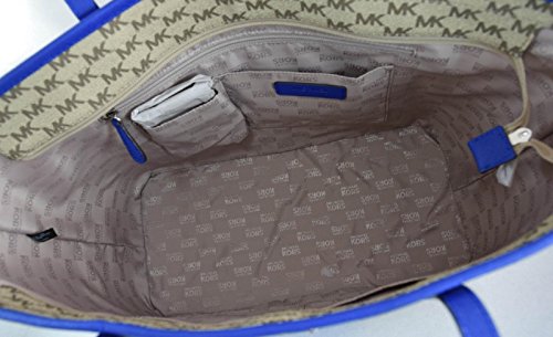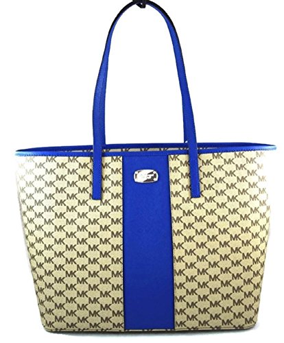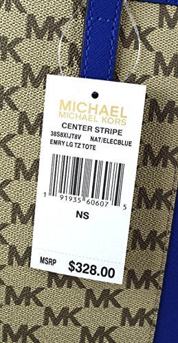 MICHAEL MICHAEL KORS EMRY LARGE TRAVEL CENTER STRIPE HANDBAG NAT/ ELECTRICBLUE