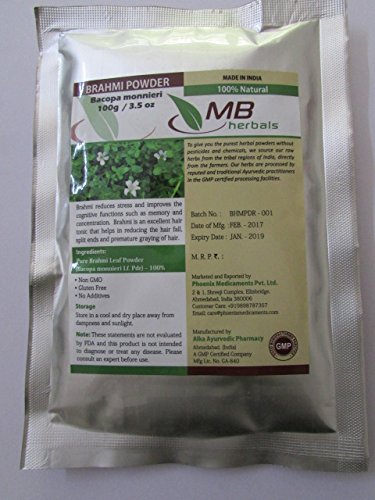 -. Title : MB Herbals Pure Brahmi Leaf Powder 100g / 3.5 oz - 100% Pure - Organically Grown Bacopa monnieri Leaf Powder - Promotes Hair Growth & Brain Function