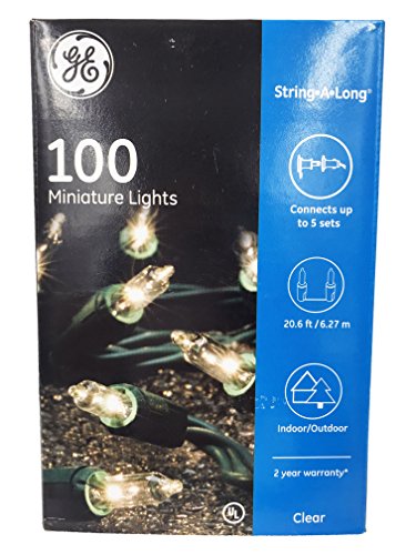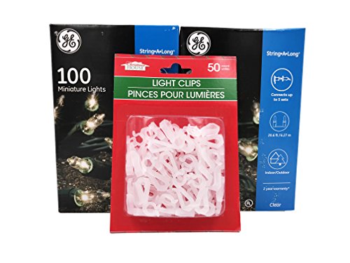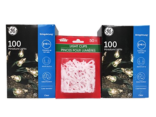 GE String A Long 100 Count Indoor / Outdoor Mini Clear White Holiday Lights Set on Green Wire (2 PACK + 50 CT CLIPS)