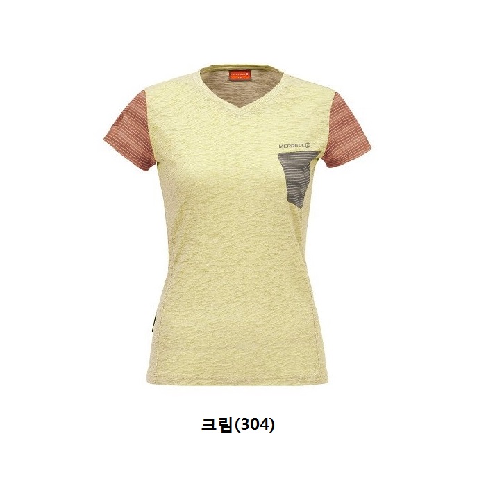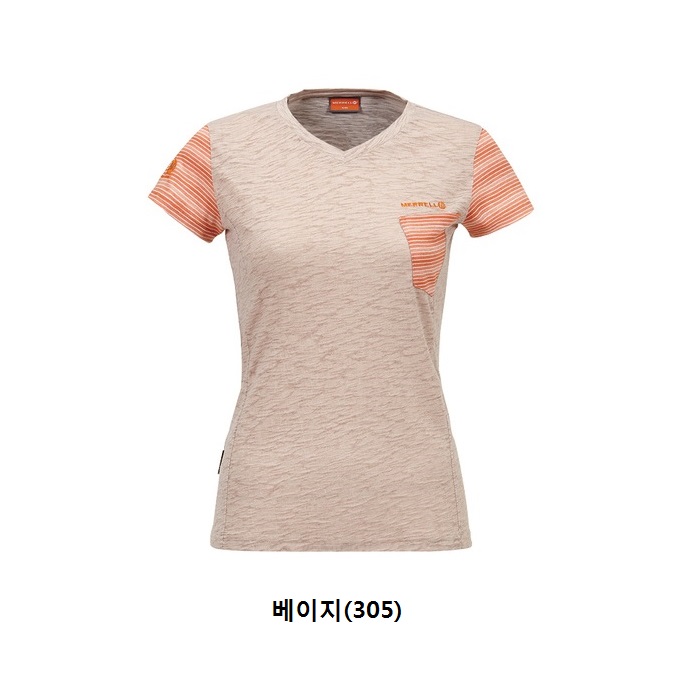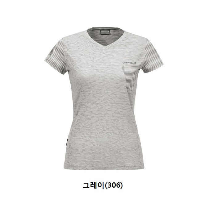 포켓형 브이넥 라운드티. 멜란지 원단과 가슴 포켓을 적용하여 깔끔한 제품.