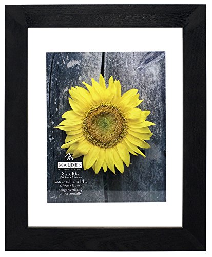 Malden International Designs Rustic Distressed Float Matted Picture Frame, 8x10/11x14, Black