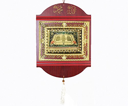 (Red and Golden) Ayat-al-Kursi + Dua of blessing + Al-Qalam Verse (Protects from Evil Eye Verse) Wall Decor-metal Qur'an Decoration [Arabic Qur'an, Turkish Title]