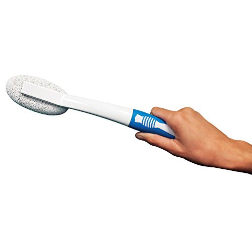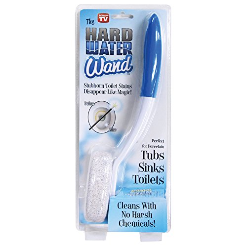 -. Feature : Scratch Free Volcanic Pumice removes tough stains / All Natural and Chemical Free / Extended reach handle keeps hands clean and sanitary / Won't damage porcelain surface / Self-stick hanging hook included