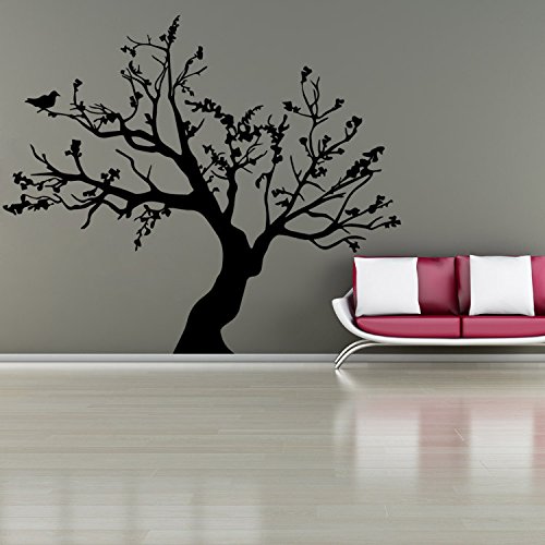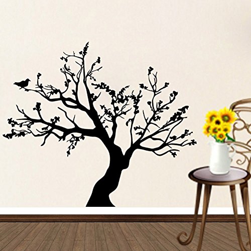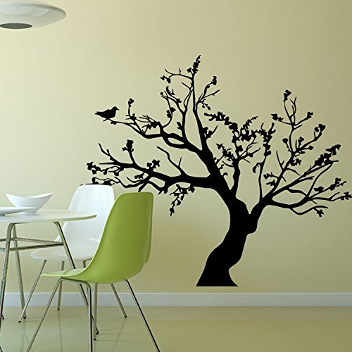 N.SunForest Big Tree with Birds Vinyl Wall Decals Home Sofa Living Room Bedroom Nursery Wall Stickers Mural Decor Art