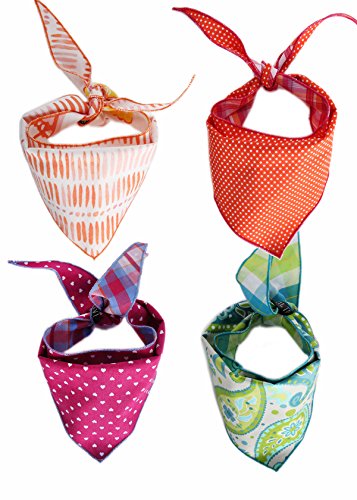 Studio : Doggone Cute Inc. Publisher : Doggone Cute Inc. Binding : Misc. Product Description Make getting dressed even easier with this 4 pack reversible cotton bandana set. Preselected, this assortment of cotton bandanas offer 8 different styles that show off your furry friend's style effortlessly no matter the mood they're in. Lightweight and simple, these cotton bandanas are perfect go to outfits for every day wear. Medium fits necklines of 8 - 15" and large fits necklines of 16 - 24". 0