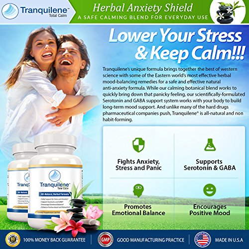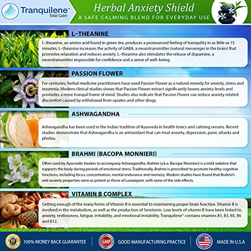 -. Title : Tranquilene Total Calm - Herbal Stress Anxiety & Panic Remedy - Serotonin/GABA Support - 1 Month Supply (60 Capsules) - Calcium, Magnesium, Ashwagandha, Bacopa, Tryptophan, Theanine, B-Complex and More