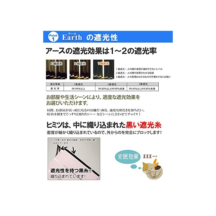 어스 제약 형상 기억 가공부!! 1 급차광 커튼 어스 폭100cm×장178cm 2매 셋트