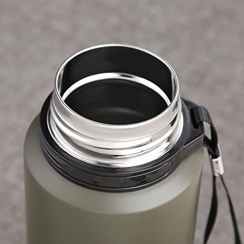 ONEISALL 1L/34 Oz Large Capacity Stainless Steel Thermos,Travel Coffee Mug&Sport Vacuum Flask,Insulation Water Bottle for Outdoor Sport Camping Traveling,Keep Hot&Cold Beverage Bottle(Army Green)