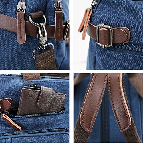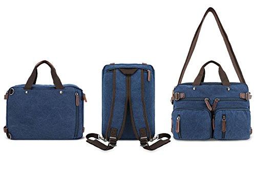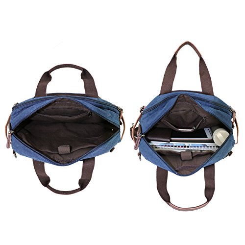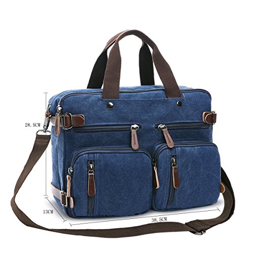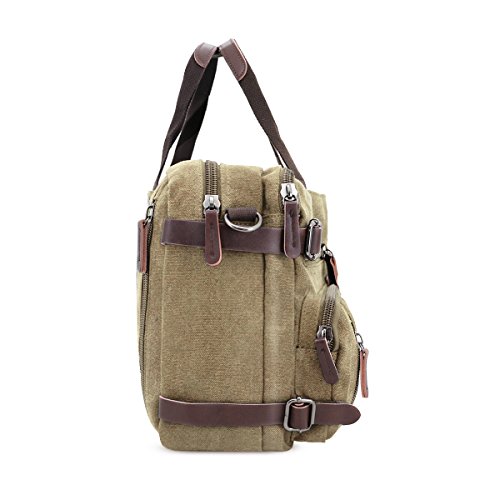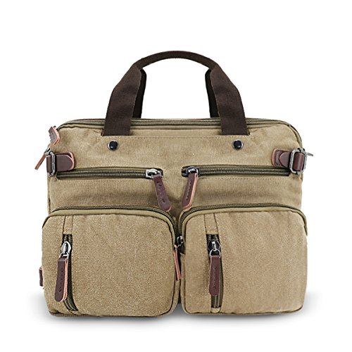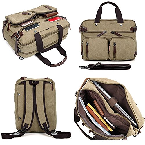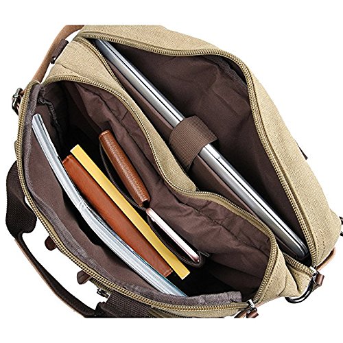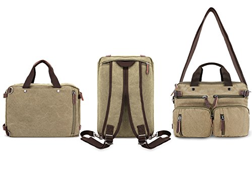 Structure ? 2 main pockets ? 1 laptop compartment ? 1 inner zip pocket, 2 inner small pockets ? 6 front zip pockets, 1 front pocket ? 2 back pockets (could hide shoulder straps) Key Features ? Top Quality And Affordable Price LYDC series products are produced by our factory which has produced many backpack for international brands. We sell LYDC products directly through Amazon platform rather than traditional channels such as distributors or retailers, So we can give customer more discount on price. ? Material And Processing Characteristics The vintage messenger bag is made of high quality 16 OZ vintage canvas and genuine leather material. So it's very durable. This soft, dense and water resistant canvas will last for a long lifetime. We have employed high-grade thicken canvas reinforced to maximize vintage messenger bag strength for your ultimate safety. So the vintage messenger bag are tested to hold up to around 45 pounds. ? Way Too Easy Money Back Promise Our promise is that our product is just as great, better or the best out there and we back it with our crazy promise. If you are unsatisfied with our backpack, you could contact us and tell us your reason, then we will give you your money refund within 24 hours and you can keep the backpack. Package includes ? 1 padded shoulder strap tab. ? 1 backpack/plastic bag (Please keep plastic package bag away from children). Notes ? There may be a small smell when you take this bag, it is new and unused. Open the package and put it in a ventilation for a few hours, then the odor will disappear. ? Please be reminded that due to the lighting effect environment, brightness and contract parameters monitor etc, there could be slight differences between the color tone of the images and real object. 0