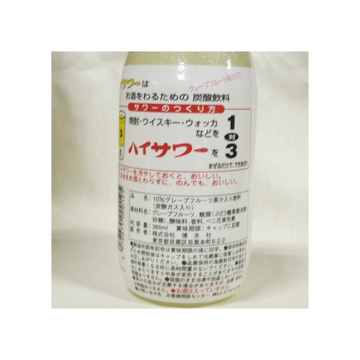 원본상품명: 博水社 ホ?ム ハイサワ? グレ?プフル?ツ 360ml×24本