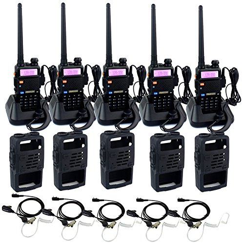-. Binding : Electronics -. Brand : Retevis -. Color : Black -. EAN : 0631976695374 -. Feature : Big Power, Small Size: 5 watts power,small enough to fit in a pants pocket, professional appearance / A/B band independent operation;Channel:128;Crystal clear FM Broadcast;50 CTCSS/105 DCS / Scanning: Allow you scan either channels or privacy codes within a channel to locate conversations in progress / Rubber Protection case could protect your radio from scratches and dings while making it water resistant / We provide 1 year warranty and 7 days no reason to return ;No matter any reason, within 7 days you can apply for a return; If further details,please contact us freely,we will work with you to reach win-win -. Label : Retevis -. Manufacturer : Retevis -. Model : Retevis RT-5R -. PackageQuantity : 1 -. ProductGroup : Car Audio or Theater -. ProductTypeName : TWO_WAY_RADIO -. Publisher : Retevis -. Studio : Retevis -. Title : Retevis RT-5R 2 Way Radio 5W 128CH VHF/UHF 136-174/400-520MHz VOX FM Walkie Talkie Ham Amateur Radio (5 Pack) and Rubber Radio Holster (5 Pack) and 2 pin PTT Mic Covert Air Acoustic Headset (5 Pack) -. UPC : 631976695374
