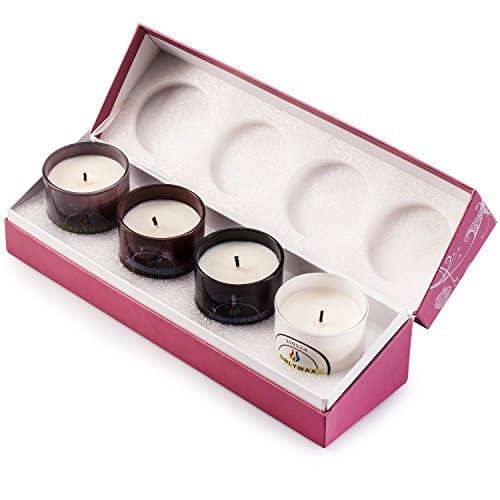 Updated luxury candle votive set includes four Fragrances : Vanilla, Gardenia, Jasmine And Lilac. Packaged in a luxurious and sophisticated soft-touch gift Box