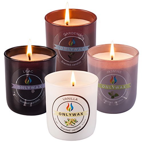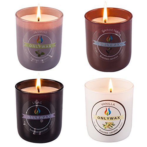 Scented Candles 4 Pack Gift Set,Vanilla, Gardenia, Jasmine And Lilac, Aromatherapy Glass Jar Holidays Votive Soy Candle.