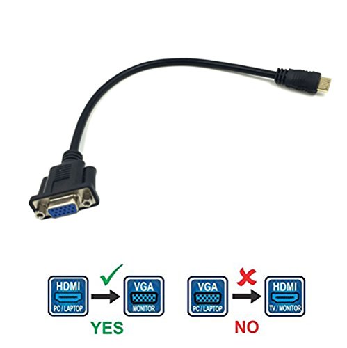 -. Feature : Please kindly note this cable is a HDMI Male to VGA Female Cable. Make sure your device comes with 15 pin VGA port before purchasing. / Supports resolutions at 800x600 (SVGA), 1024x768 (XGA), 1600x1200 (UXGA), 1080p (Full HD), 1920x1200 (WUXGA), and up for high resolution LCD and LED monitors / High performance VGA cable connects a VGA (Video Graphic Array) equipped computer to a monitor or projector with 15-pin VGA port (also known as RGB, DB-15, DE-15, HD-15, HDB-15 or D-sub 15) for video editing, gaming, or video projection.Ideal for classrooms, conference rooms, meeting rooms, House of worship and many more / Connects PC or laptop to the projector, LCD monitor, and other video display system through VGA connections. / Length: 30cm/ 12 inch