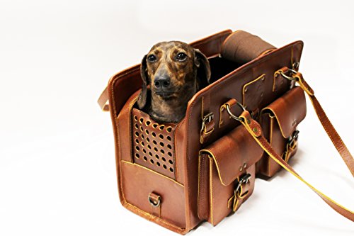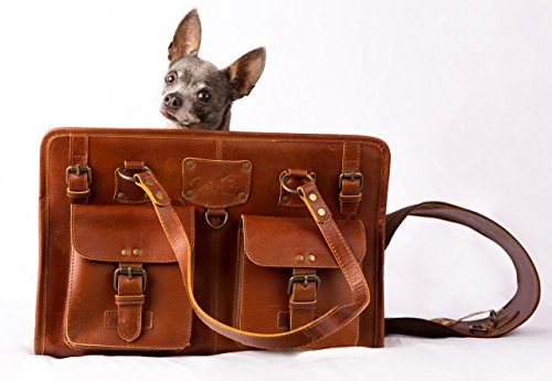 -. Binding : Misc. -. Brand : Midlee -. Color : Brown -. EAN : 0817006029979 -. Feature : 16" long x 7" wide x 11" tall carrier with two 12" handles / 100% genuine leather designer dog carrier that comes with a dust bag / Two large exterior pockets perfect for toys, treats, leashes, and other items / Interior collar clip and removable pad / Crisp tan leather and brass accents add up to a chic carrier that looks just like a purse! -. Label : Midlee -. Manufacturer : Midlee -. PackageQuantity : 1 -. ProductGroup : Pet Products -. ProductTypeName : PET_SUPPLIES -. Publisher : Midlee -. Studio : Midlee -. Title : Designer Leather Dog Carrier Brown 2 Pocket Purse Tote by Midlee -. UPC : 817006029979