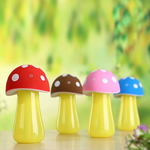 JUN-Q Mushroom Humidifier Diffuser with LED Lights, 200ml Portable Mini USB Ultrasonic Diffuser Cute Cool Mist Air Humidifier Purifiers for Office Baby's Room and Toddlers Room Pink