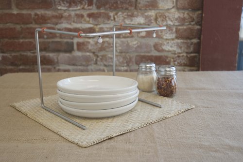 Give your homemade pizza an authentic pizza parlor presentation. This wire pizza stand elevates your pizza off the table, creating room for plates or other necessities underneath. This wire stand is made of RTA wire, with non-slip silicone rings to keep your tray or pan in place. Create more space on the table by storing plates underneath. Folds down for easy storage. Measures 8 x 8.5 x 9.25 inches when assembled.