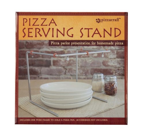 Place on serving table and top with pizza pan. Cut pizza before placing on serving stand.