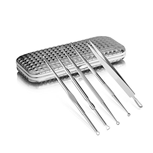 - BONUS TRAVEL CASE INCLUDED - 5 Piece Stainless Steel Kit Includes Lancet Needle, Blackhead Sebum Scrubbers, Loop And Spoon Tools, Extractors You Can Eradicate Blackheads With Ease. Complete With A Travel Case, This Kit Can Be Thrown Into Your Bag When Your On-The-Go. Keeping All Tools In An Organized Fashion.