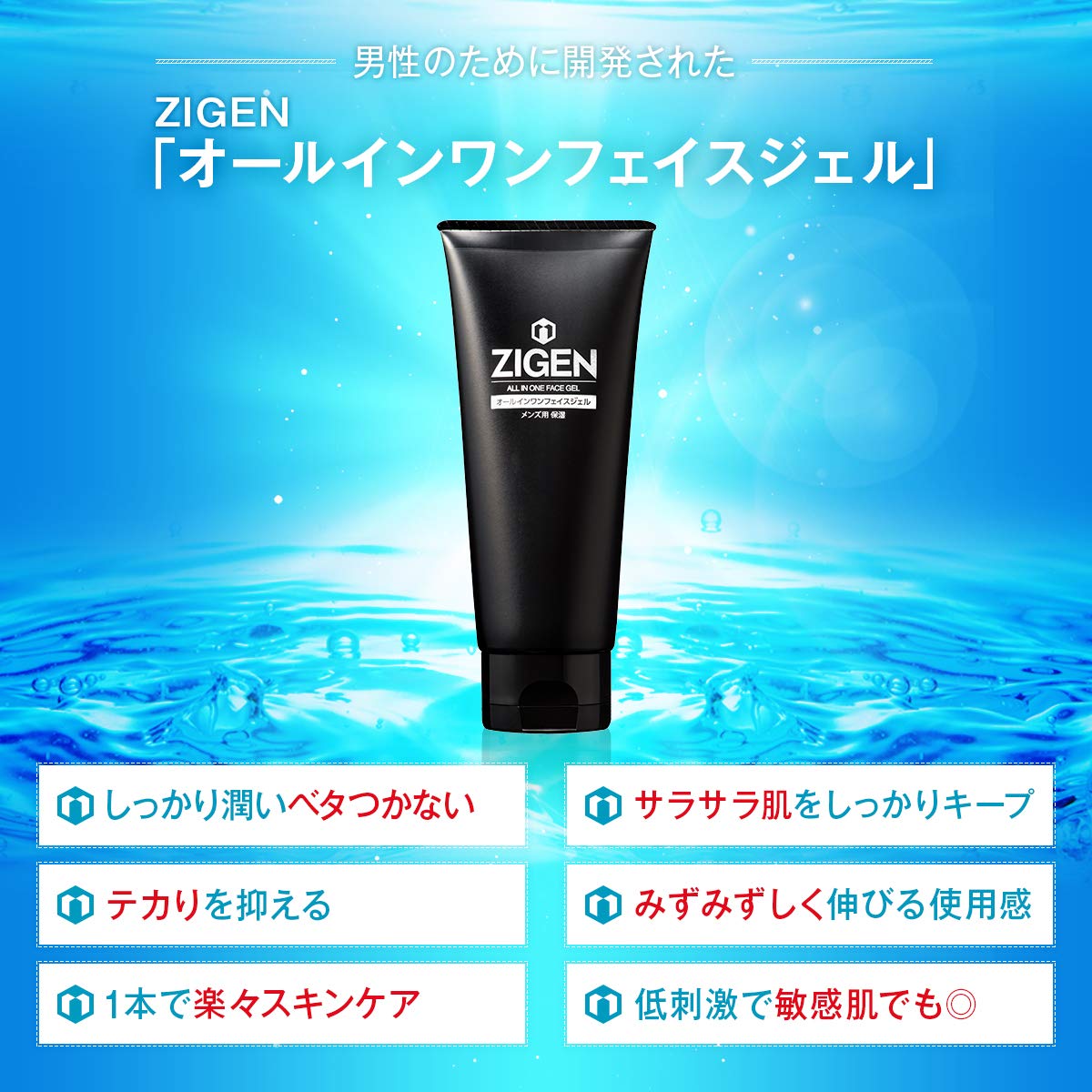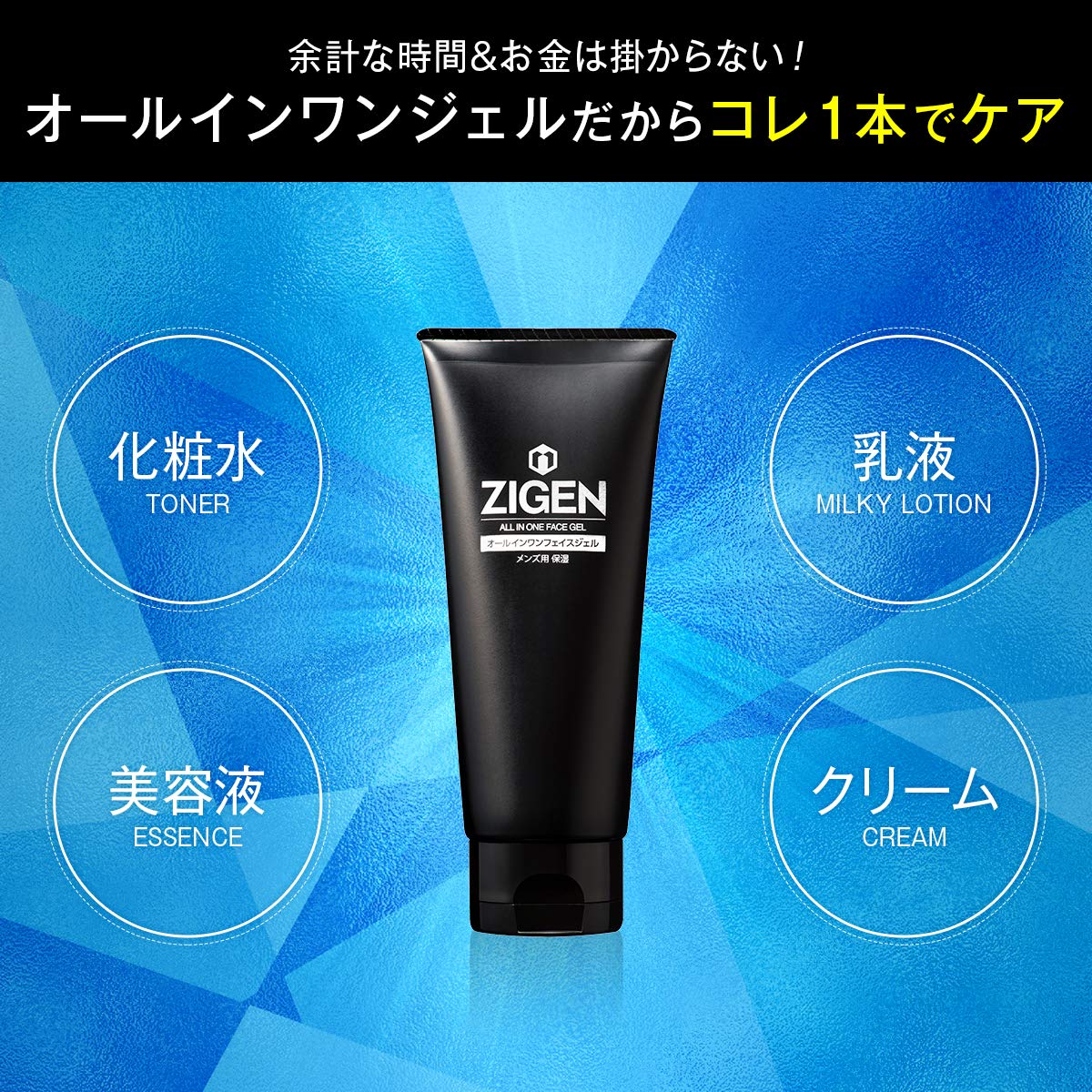 【オールインワンフェイスジェル】化粧水・美容液・乳液・クリームの4役が1本に凝縮されているので時短&簡単ケアが可能!髭剃り後のケアとしてもお使いいただけます。