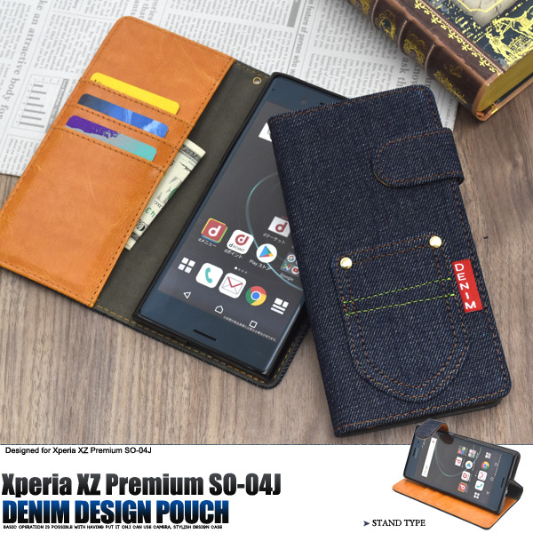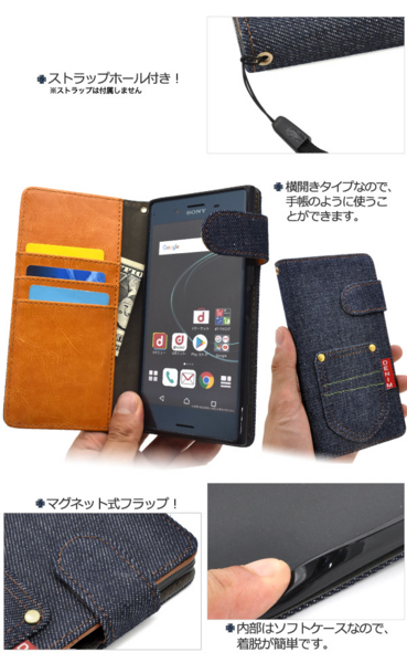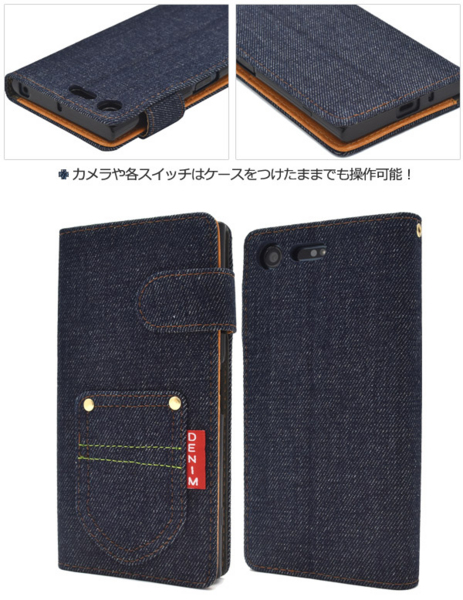デニムデザインの手帳型ケース。